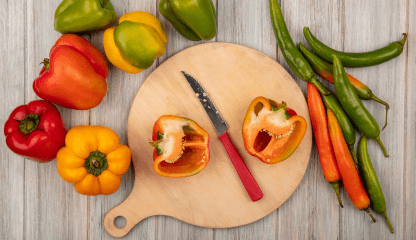Kant-en-klare verse rode en gele paprika's, gemarineerde potten en alles biologisch en van hoge kwaliteit, speciaal voor u. Ideale groenten om mee te koken of gewoon zo te eten.